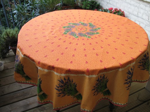 -Tischdecke *Provence* orange aus 100 % Baumwolle. - 180 cm Durchmesser und bei 40 Grad waschbar