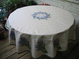 -Tischdecke *Provence* beige abwaschbar! - 100 % Baumwolle, Duchmesser 180 cm und bei 40 Grad waschbar.